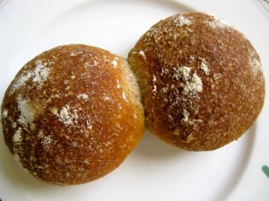 3 hrs. before baking, remove dough from refrigerator. Divide cold dough into 16 equal pieces and shape into rolls. Place in pairs, each pair touching each other, seam side down on parchment lined baking sheet. Dust with flour. Let breads rise ca 2 – 2 1/4 hrs., or until grown ca. 2 times their original size.
