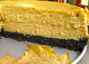 Add cinnamon, ginger, Port and vanilla, and beat until blended, ca. 30 sec. Add eggs one at a time, beating just until blended. (Don’t overbeat at this point or cheesecake will puff too much). Pour filling into cooled crust and smooth top.