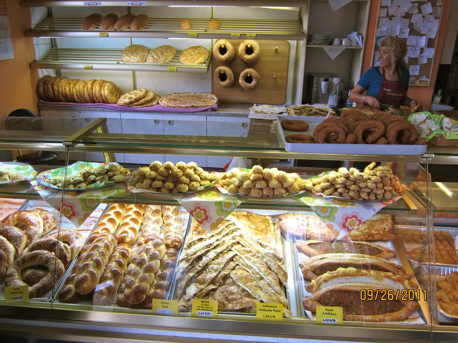 Als ich meine Kusine Uta in Delmenhorst besuchte, gingen wir in eine türkische Bäckerei mit der schönsten Auslage, die ich je gesehen hatte. Alles wurde vor Ort hergestellt, man konnte den Backofen und die Arbeitsbank sehen, und es roch appetitanregend nach Butter.
