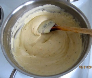 Stir purée into butter/cream mixture. Add cheese and egg yolks and mix until well blended. Season with herbal salt, pepper and nutmeg to taste.