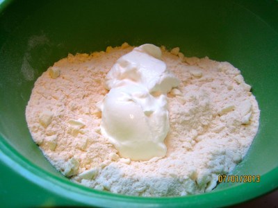 The sour cream hardly seems enough to moisten the dough (but it does!)