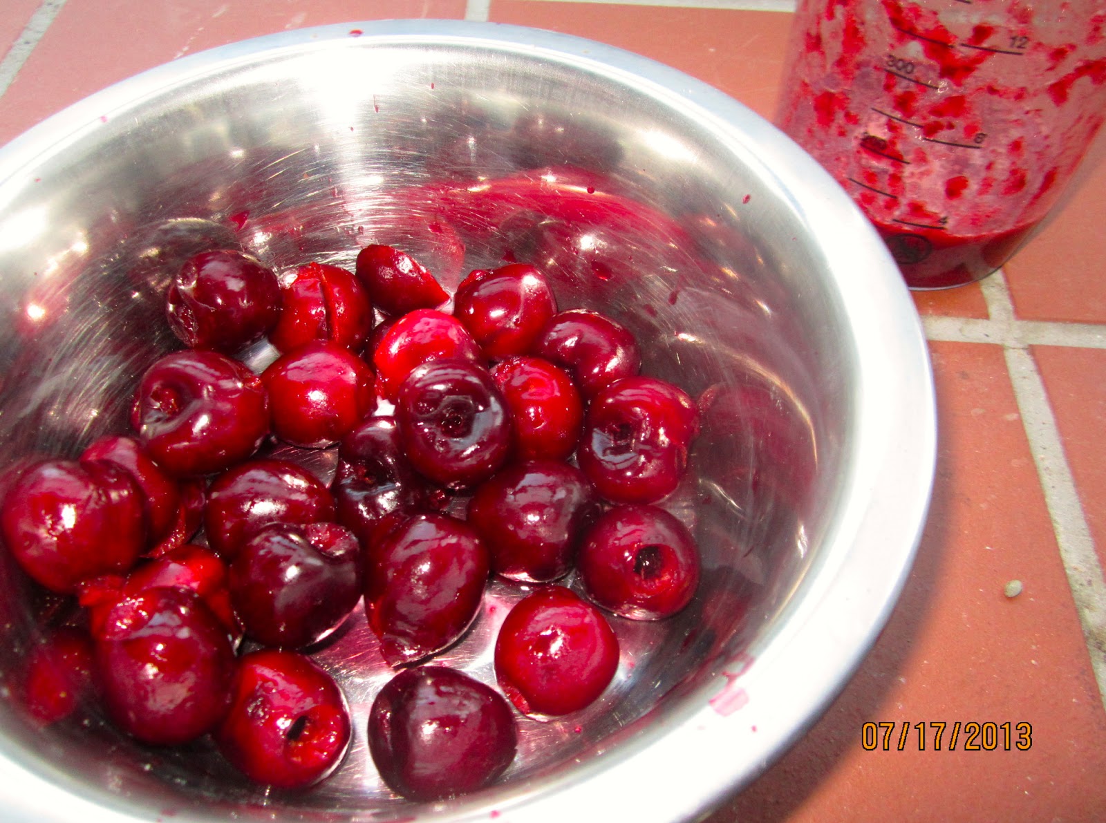 Dark, sweet cherries, one of my favorite fruits, make my Maiden blush, and, also, adds some nice bits to the jello-like dessert.