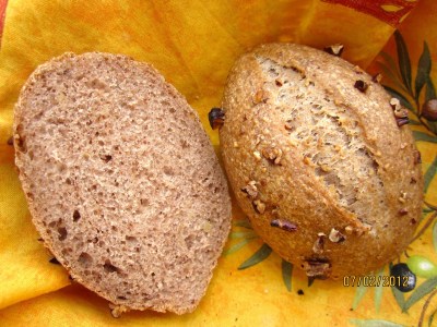 For this recipe, adapted from “Brot aus Südtirol“, pecans are a great alternative. The rolls taste a little different, but equally good. (Much as I like walnuts, here there are not a good choice).