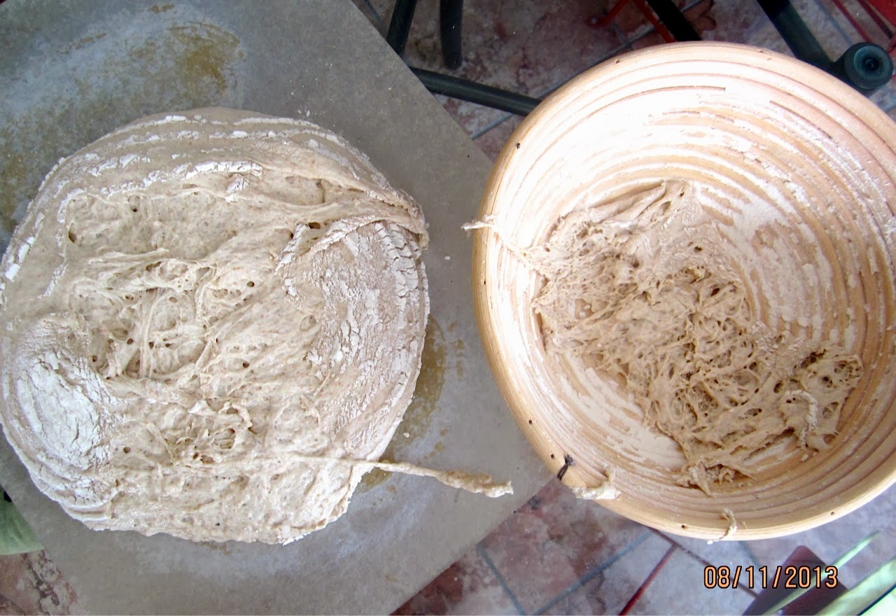 Sticky wicket: if you don’t flour the rising basket really, really well (whether lined, or not), this can happen: