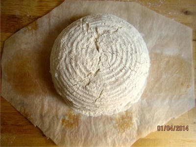 Place dough round, seam side down, in proofing basket, sprinkle generously with flour, cover well, and proof for about 3 – 4 hours.