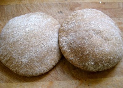 Rummaging through our basement refrigerator (inherited from my late in-laws and mostly used for retarding my doughs), I rediscovered a bag with whole grain pita dough.