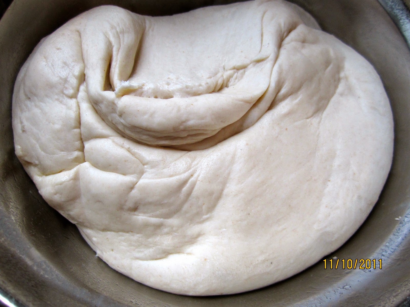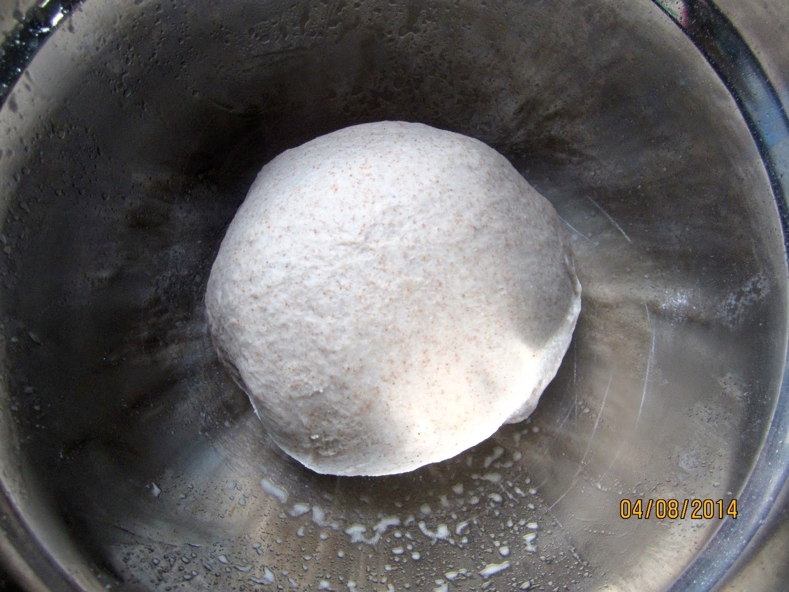 Place dough in lightly oiled bowl, roll around to coat, cover, and let rise for about 1 1/2 hour, or until almost doubled. It should be very soft and still a bit sticky.
