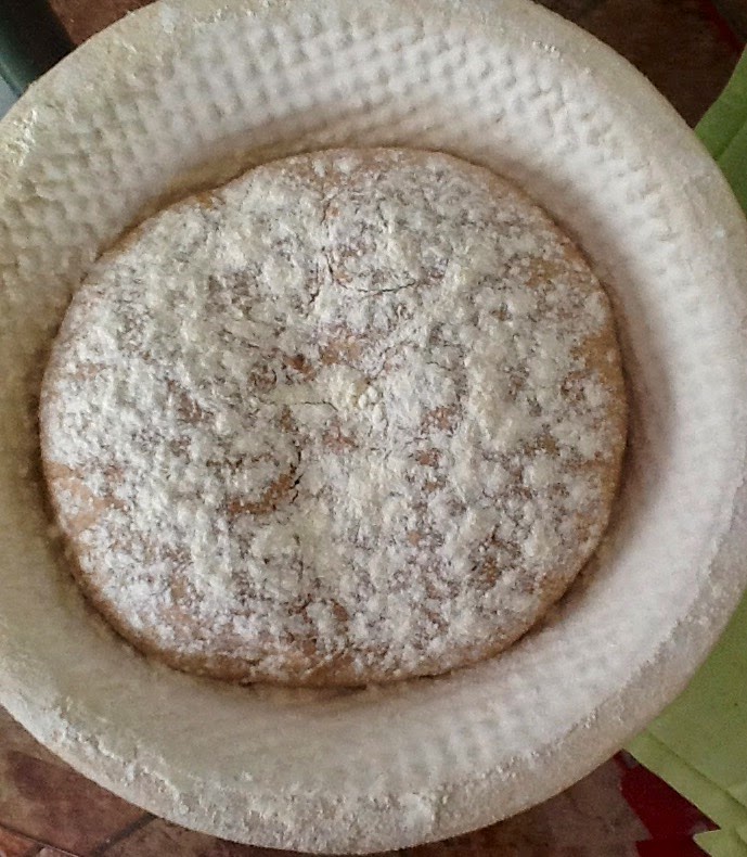 Place, seam side up, in a well floured rising basket, sprinkle with flour, and let rise, covered, for about 2 hours, or until it has grown about 1 1/2 times its original size (a dimple, made with your finger, should come back a little, but remain visible).