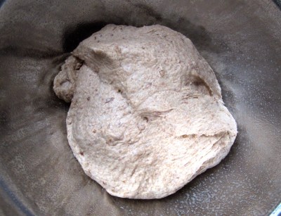 Place raisin puree, flours and water for the final dough in mixer bowl. Mix, until all flour is hydrated. Leave for 30 – 60 minutes (autolyse).