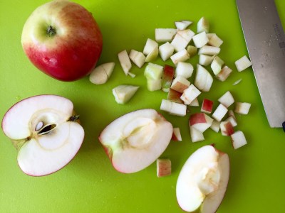 - I found small local tart apples, and did not peel them – unless the skin is very thick and tough, it’s really not necessary, and, more important, most of the vitamins are in the skin
