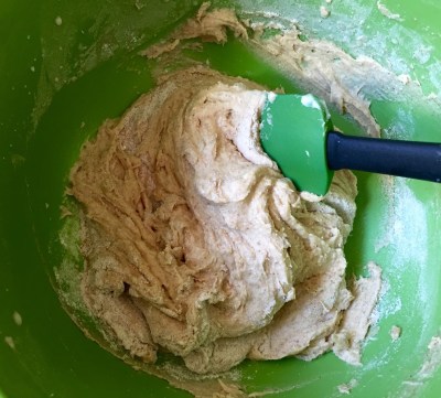 After all milk has been added, beat on medium speed a few seconds to make sure batter is smooth. Then fold in last of the flour mixture with a rubber spatula, until combined.