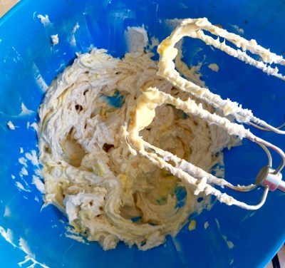 - Trying to “lightly swirl” the cream cheese batter with the cake batter in order “to sort of fuse the two batters together” proved very awkward – I would just spread the cream cheese batter over the cake bottom.