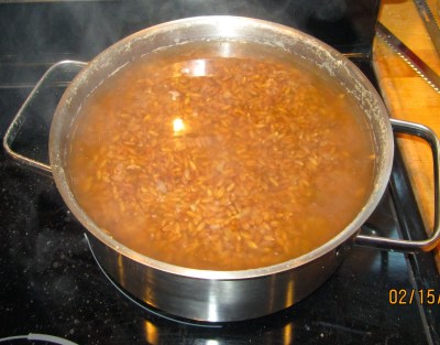 In the afternoon, drain soaked rye berries and discard water (I use it to water my plants, it contains a lot of nutrients). Place berries in a saucepan, well covered with fresh water, bring to a boil, reduce the heat and simmer for 30 minutes.