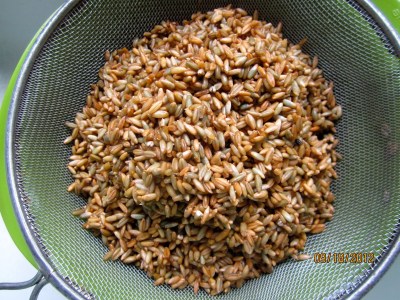 | Drain rye berries – reserve the soaking water to water your plants! |