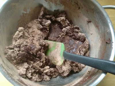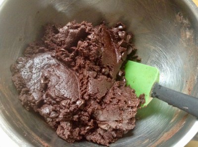 | Mixing dry ingredients into chocolate mixture |