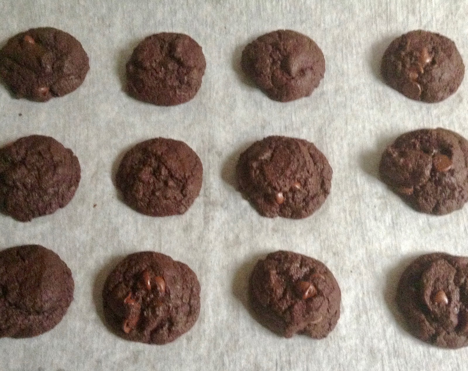 In spite of these missteps, my cookies baked up perfectly, no unsightly flattening, crackly from the outside and fudgy from inside.