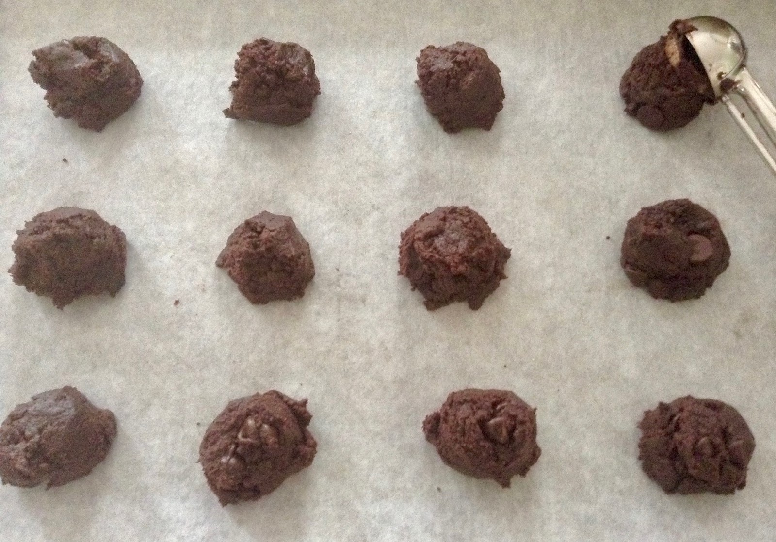 Using a 1 1/2 – 2 tablespoon scoop, place mounds of batter on prepared baking sheets (they spread a little.)