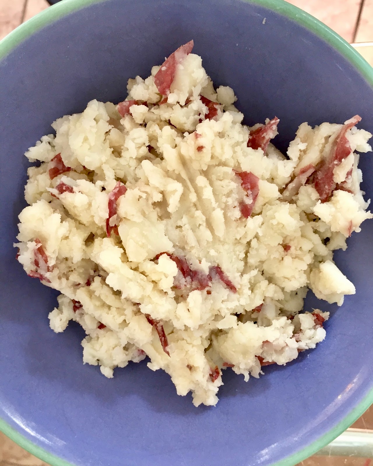 | Drain cooked potatoes and reserve 170 g of the cooking water |