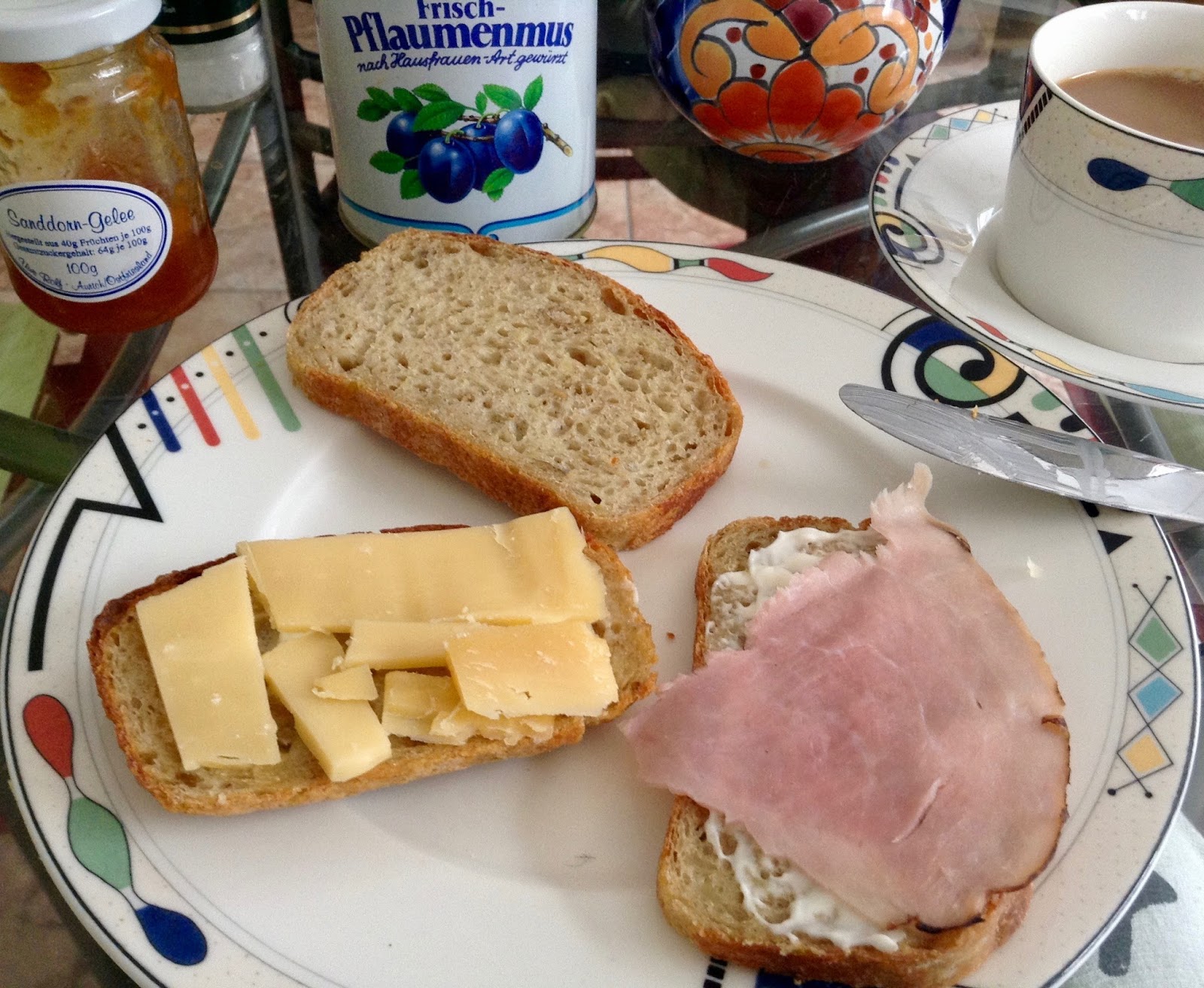 Thanks, Nancy! I don't quite remember what cheese it was, Gouda or cheddar, but the ham was definitely Black Forest Ham. I like mayonnaise with it, so I smeared the toasted bread with Hellmann's.