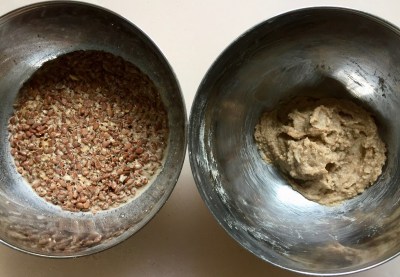 In second small bowl, stir together soaker ingredients. (This extra step is not absolutely necessary, but hard ingredients like rye chops and flax seeds benefit from longer soaking.)