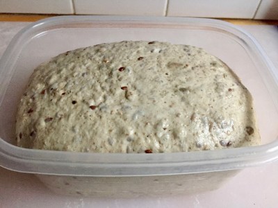 In the morning, mix starter ingredients in small bowl. Leave, covered, at room temperature for 4 – 6 hours, or until it passes the float test (a teaspoonful should float in water).