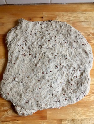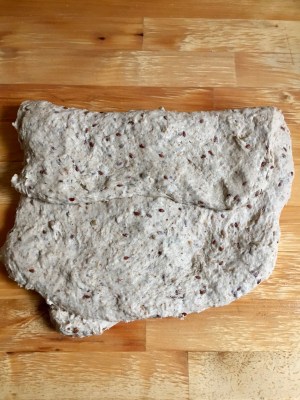 Transfer dough to lightly oiled work surface. With oiled hands, pat and pull it into a rough square. Fold dough from top and bottom in thirds, like a business letter, then the same way from both sides.