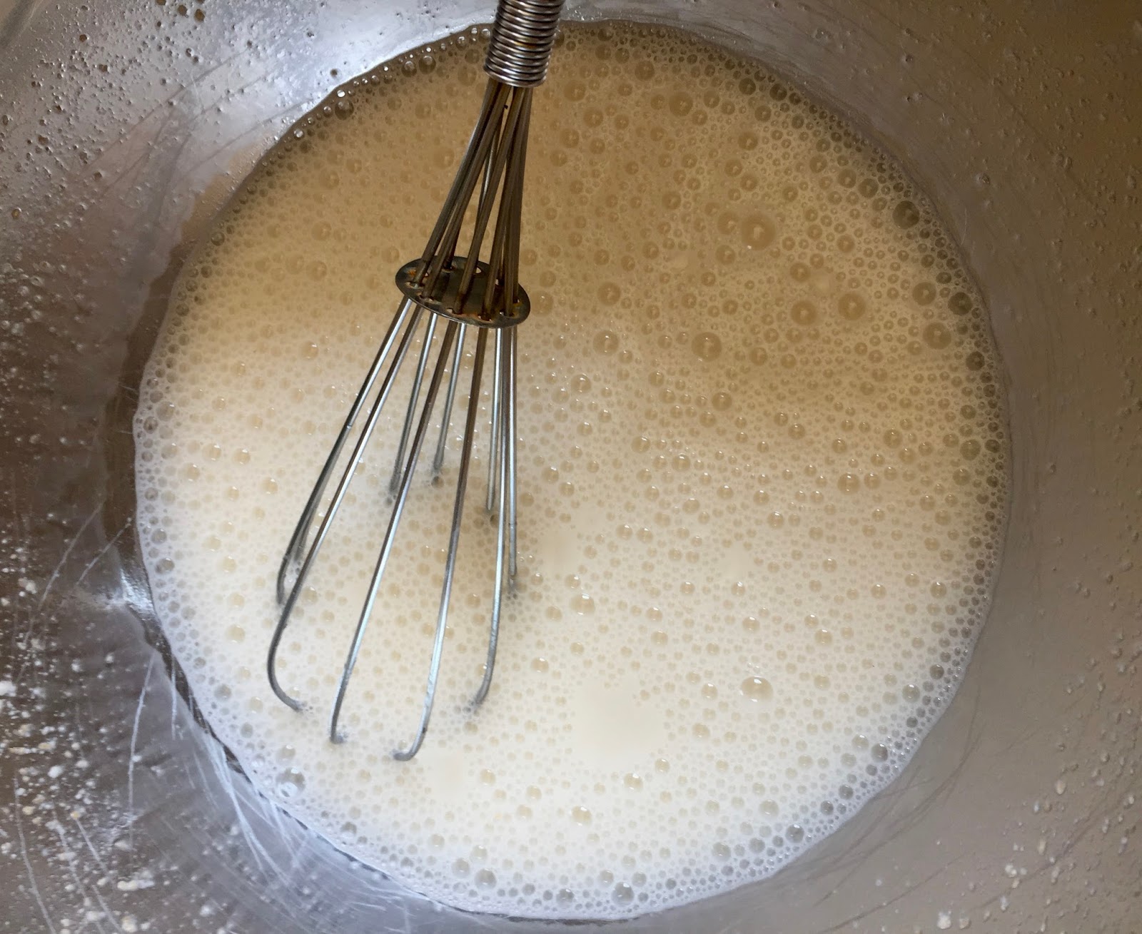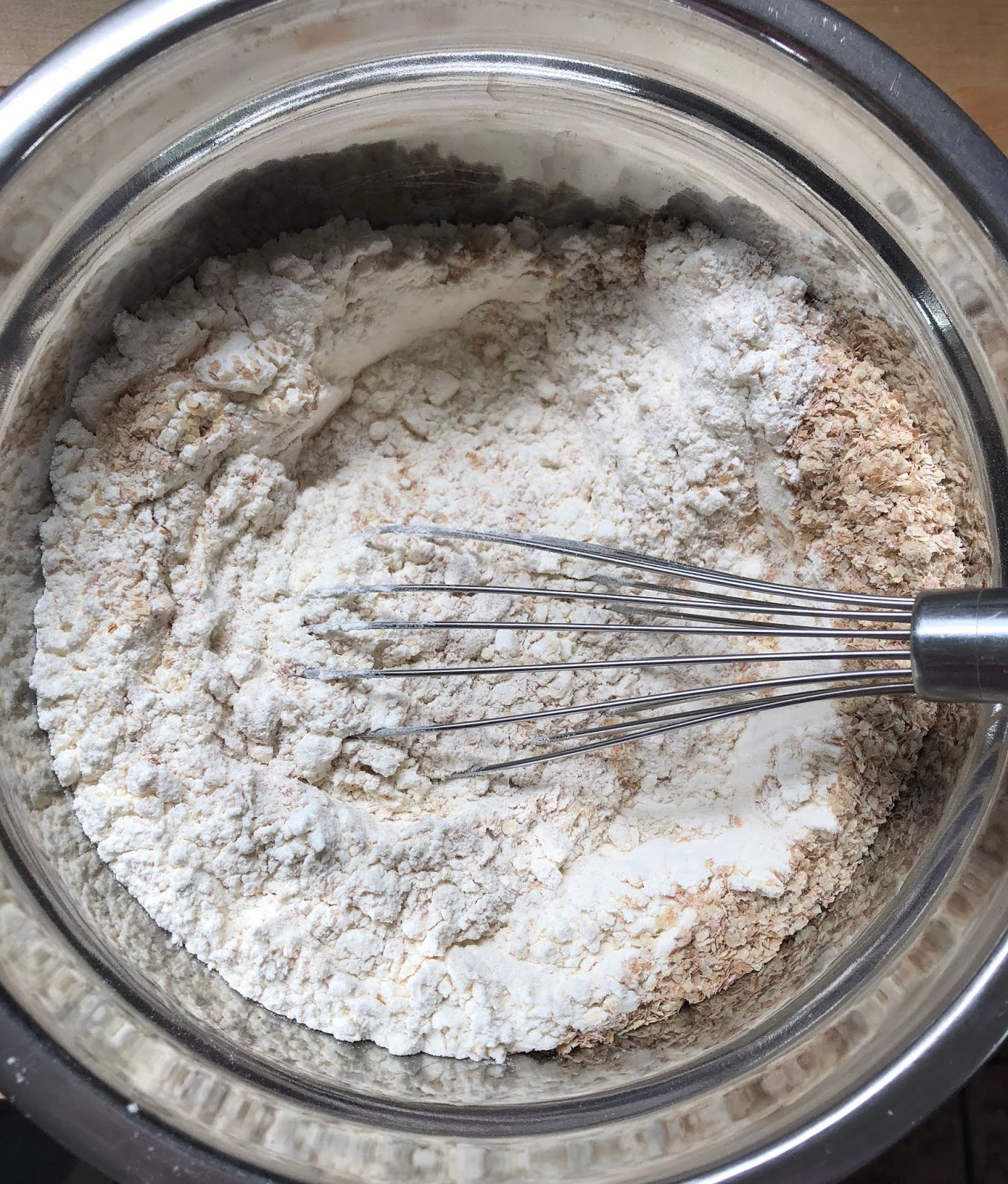 …then stir flour mixture into dissolved starter (I use a Danish dough whisk)
