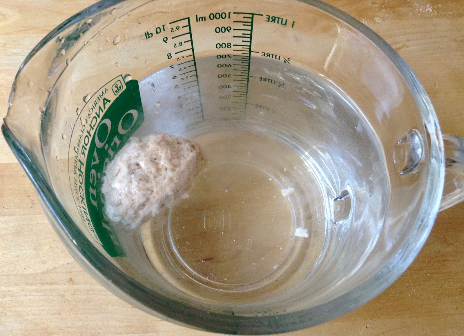 6:00 – 8:00 am: Mix levain. Cover, and leave for 6-10 hours at warm room temperature, or until a teaspoonful starter floats in water (swim test).